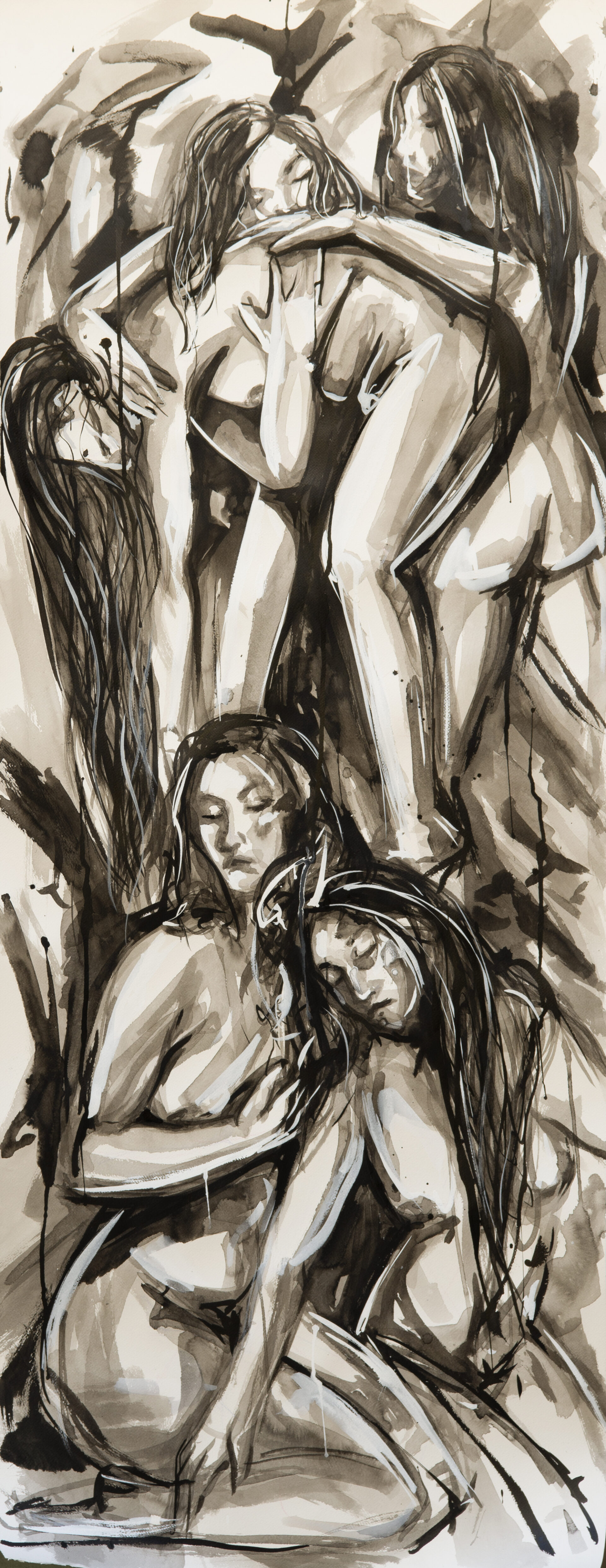 Cómo artista mi trabajo se centra en la creación de espacios para la manifestación de encuentros colectivos de desnudo, los cuales son registrados y traslados a diversos soportes tales cómo la pintura, la fotografía, el video, el dibujo y la performance. Durante las sesiones mi trabajo cómo gestora del proyecto, es dirigir el encuentro para que quienes conforman el grupo puedan sentirse en plena confianza y comodidad. Es de esta forma que mediante técnicas teatrales de improvisación se invita a la experimentación corporal a través del movimiento y la danza, siendo esta última el motor hacia la espontaneidad. De esta forma afloran de manera instantánea las herramientas emocionales que cada integrante cultiva y utiliza de manera cotidiana. Estos encuentros se basan en la emocionalidad del colectivo, siendo el mismo quién de forma simbólica crea la composición, que más tarde será transformada en la obra pictórica. Cómo una pintura viva, que nace y muere en el instante en que se manifiesta la sesión.